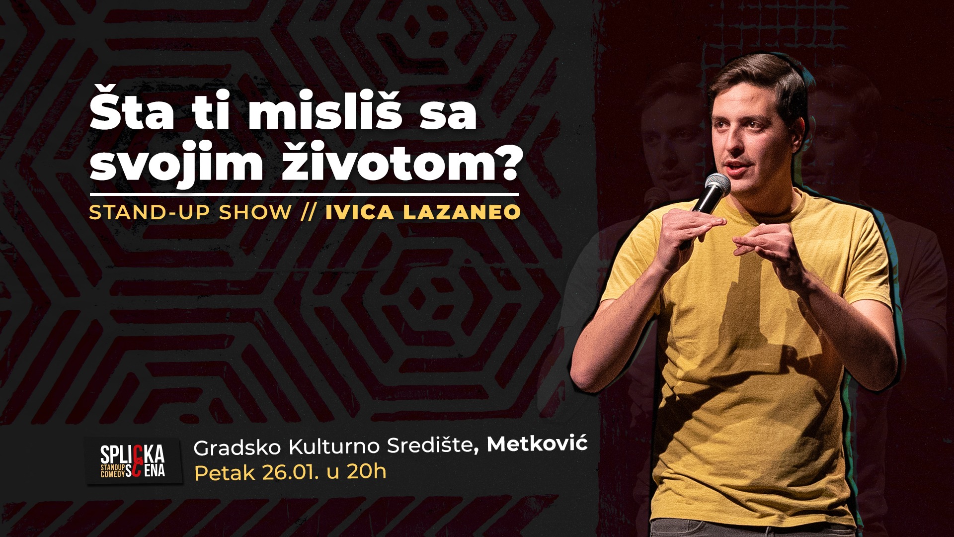 SplickaScena se vraća u Metković, a 26. siječnja u Gradskome kulturnom središtu Metković u solo izdanju nasmijavat će vas brački komičar Ivica Lazaneo sa svojim prvim showom ‘Sta ti misliš sa svojim životom?’.