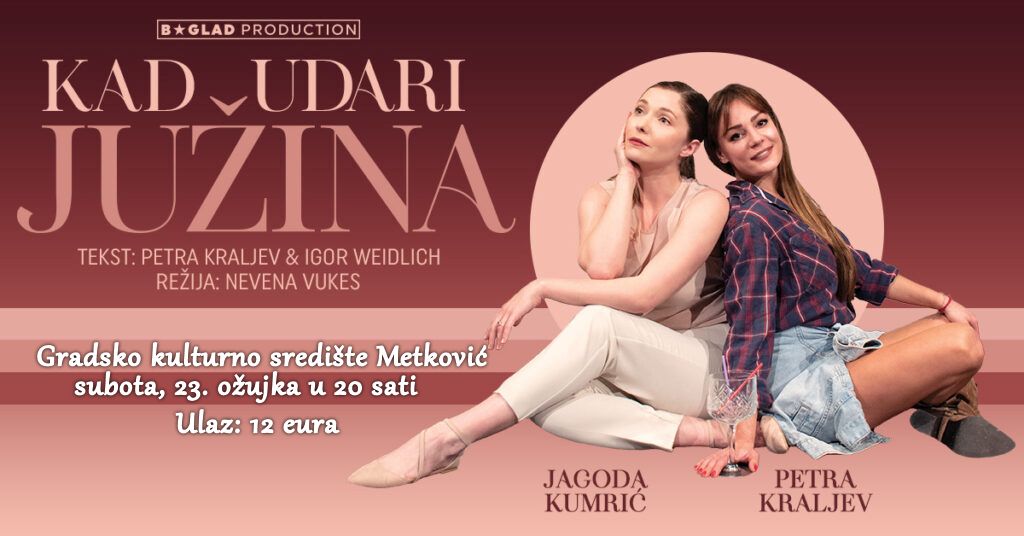 U Gradskome kulturnome središtu Metković u subotu, 23. ožujka s početkom u 20 sati na rasporedu je hit predstava ‘Kad udari južina’.