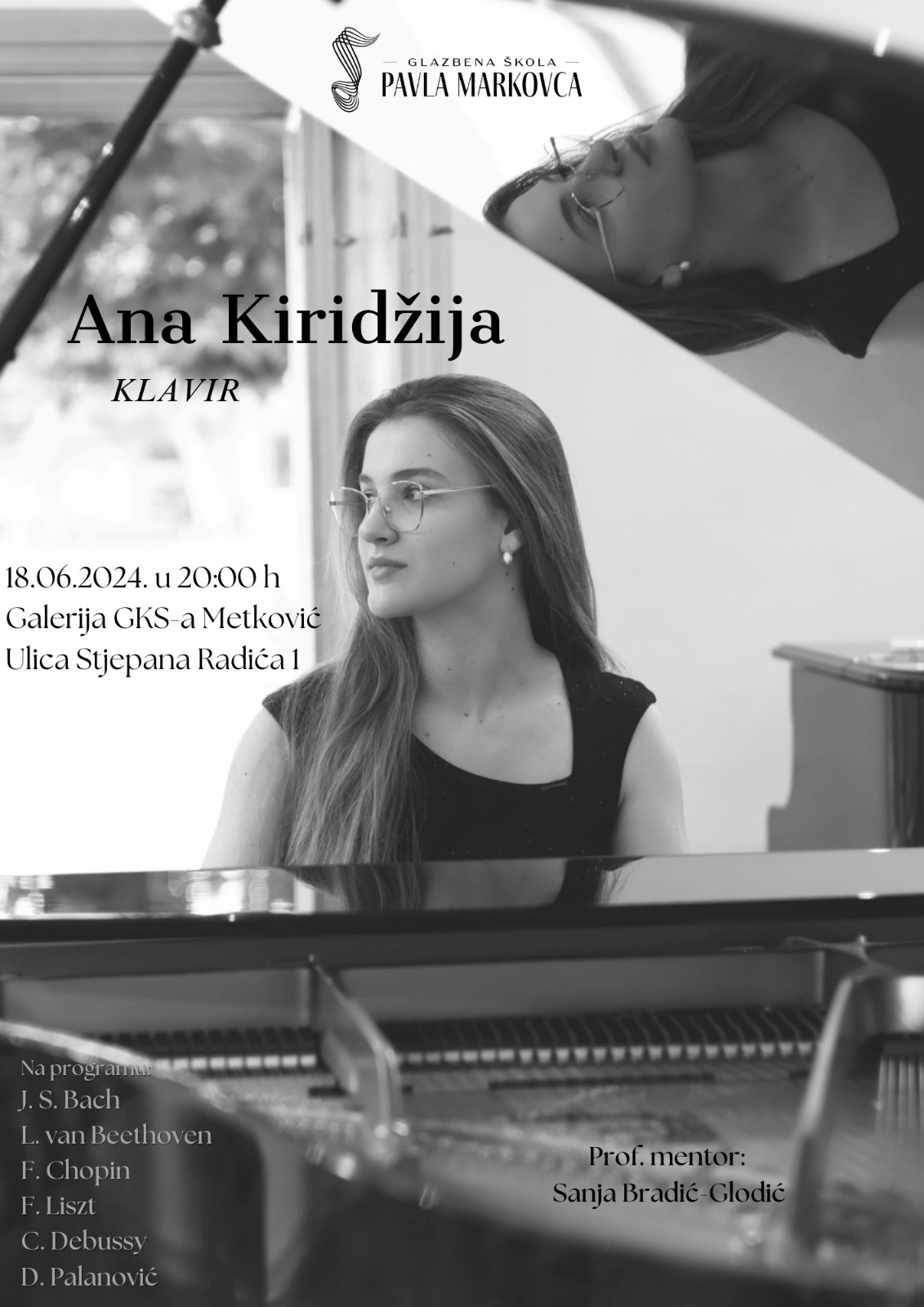 U Galeriji Gradskoga kulturnoga središta Metković u utorak, 18. lipnja s početkom u 20 sati svoj maturalni koncert održat će Ana Kiridžija.