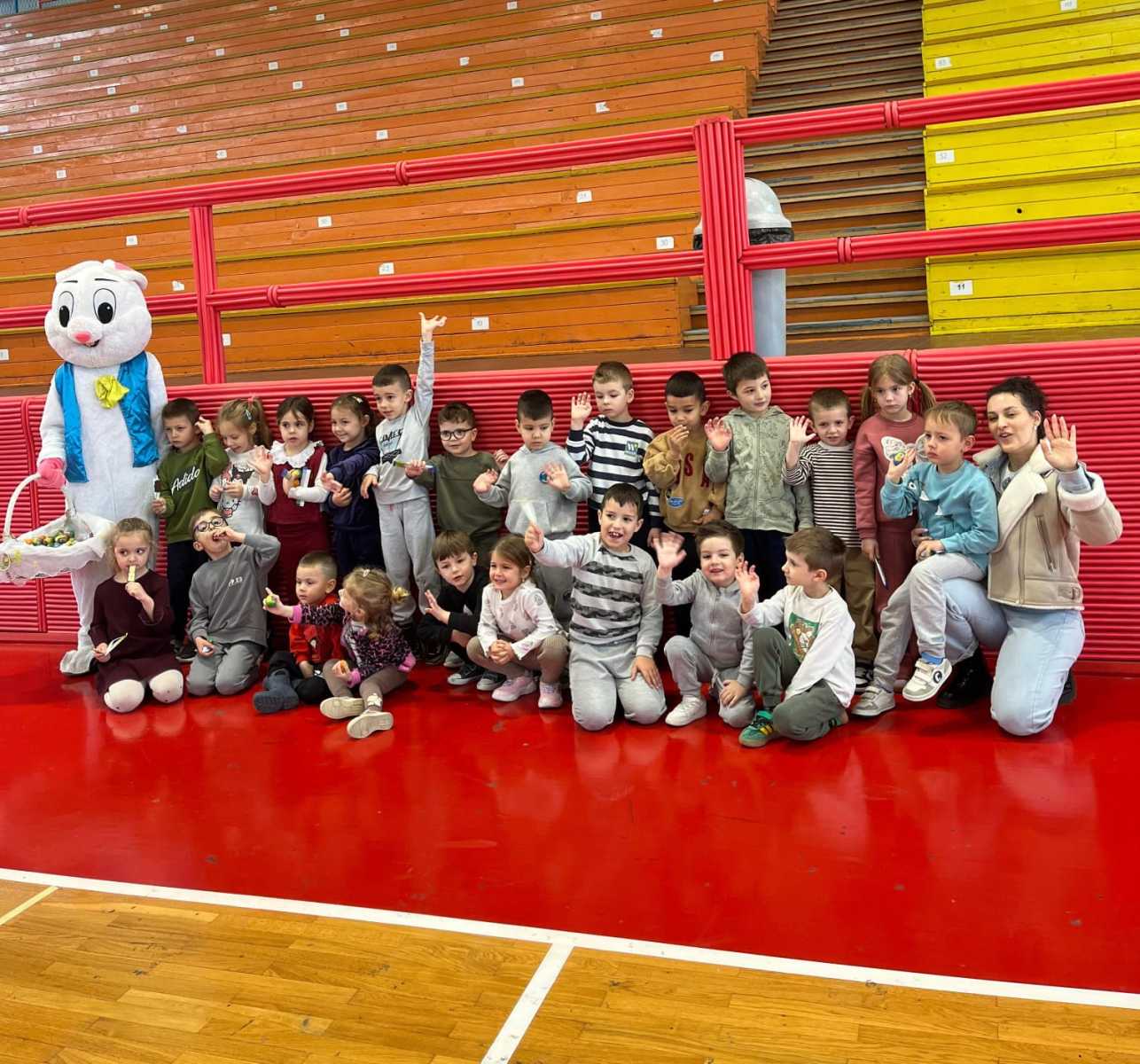 Posebno veselje među djecom izazvao je dolazak uskrsnog zeke, koji je sve prisutne razveselio podjelom čokoladnih jaja i lizalica.
