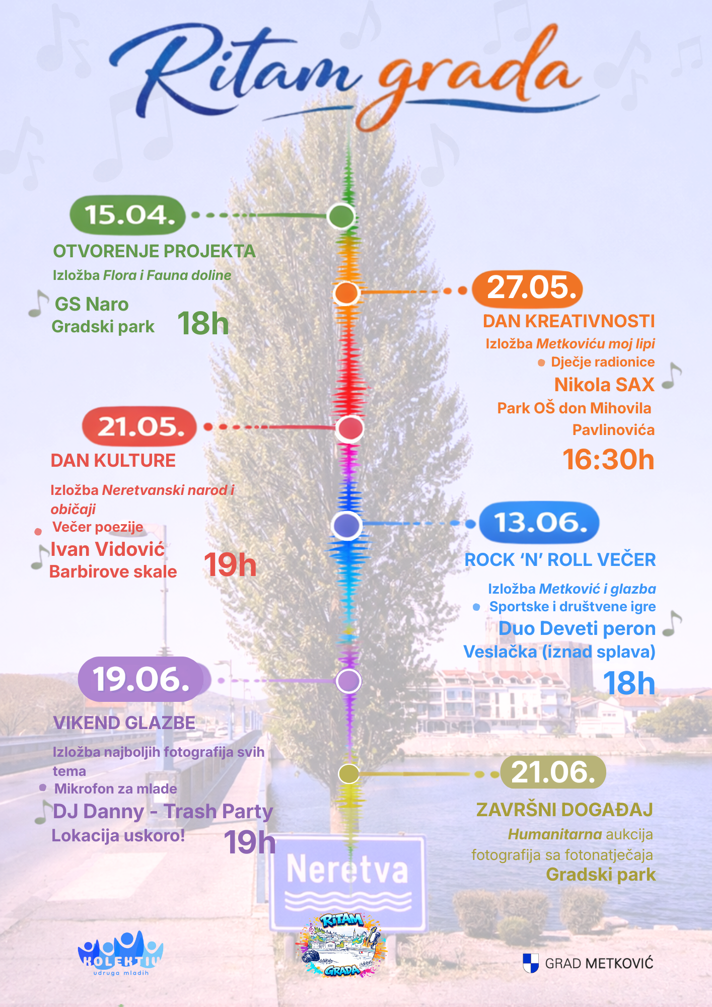 Projekt „Ritam grada“ kulturno je-umjetnička inicijativa koja se provodi u Metković od ožujka do lipnja 2026. godine, s ciljem poticanja kreativnosti, uključivanja građana i oživljavanja javnih prostora kroz umjetnost i zajednička događanja.